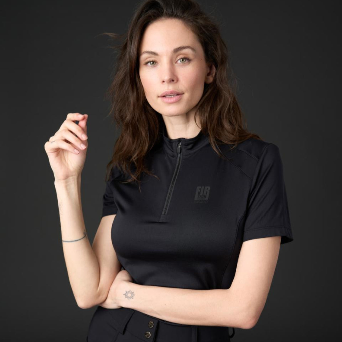 Fir-tech kortærmede t-shirt med lynlås i halsen.