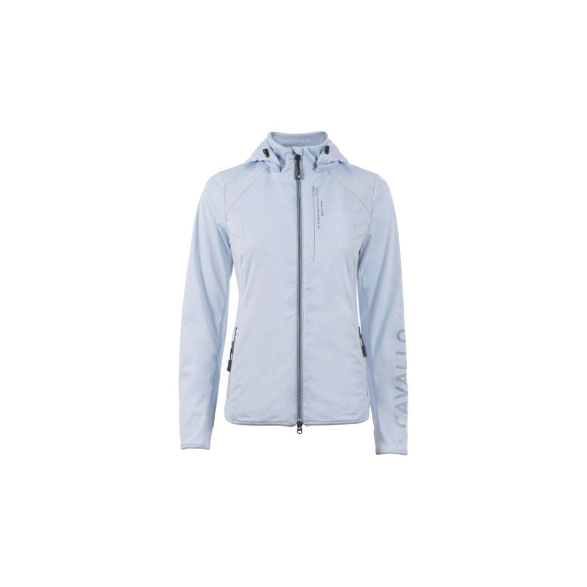 Cavallo Cavalniara SS25 er en eksklusiv, bi-elastisk hybridjakke designet til kvinder, der kombinerer stil og funktionalitet. Den aftagelige hætte kan fastgøres med en trykknap på bagsiden og justeres individuelt med en snøre, hvilket giver fleksibilitet under forskellige vejrforhold. Jakken har en 2-vejs frontlynlås i gunmetal-look med Cavallo-vedhæng samt to forlommer med lynlåse i samme stil, hvilket sikrer praktisk opbevaring. De forskellige mesh-detaljer i jakken sikrer god luftcirkulation, og en brystlomme med skjult lynlås på venstre side tilbyder ekstra opbevaringsmuligheder. Cavallo-print findes på brystlommen og bageste sømkant, mens et laser-cut Cavallo-motiv pryder venstre ærme.