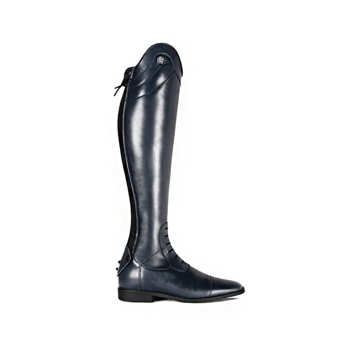 Blød ridestøvle med snører i kalveskind med ekstra slim fit og god elastik langs lynlåsen. Der er griplæder på indersiden mod hesten.