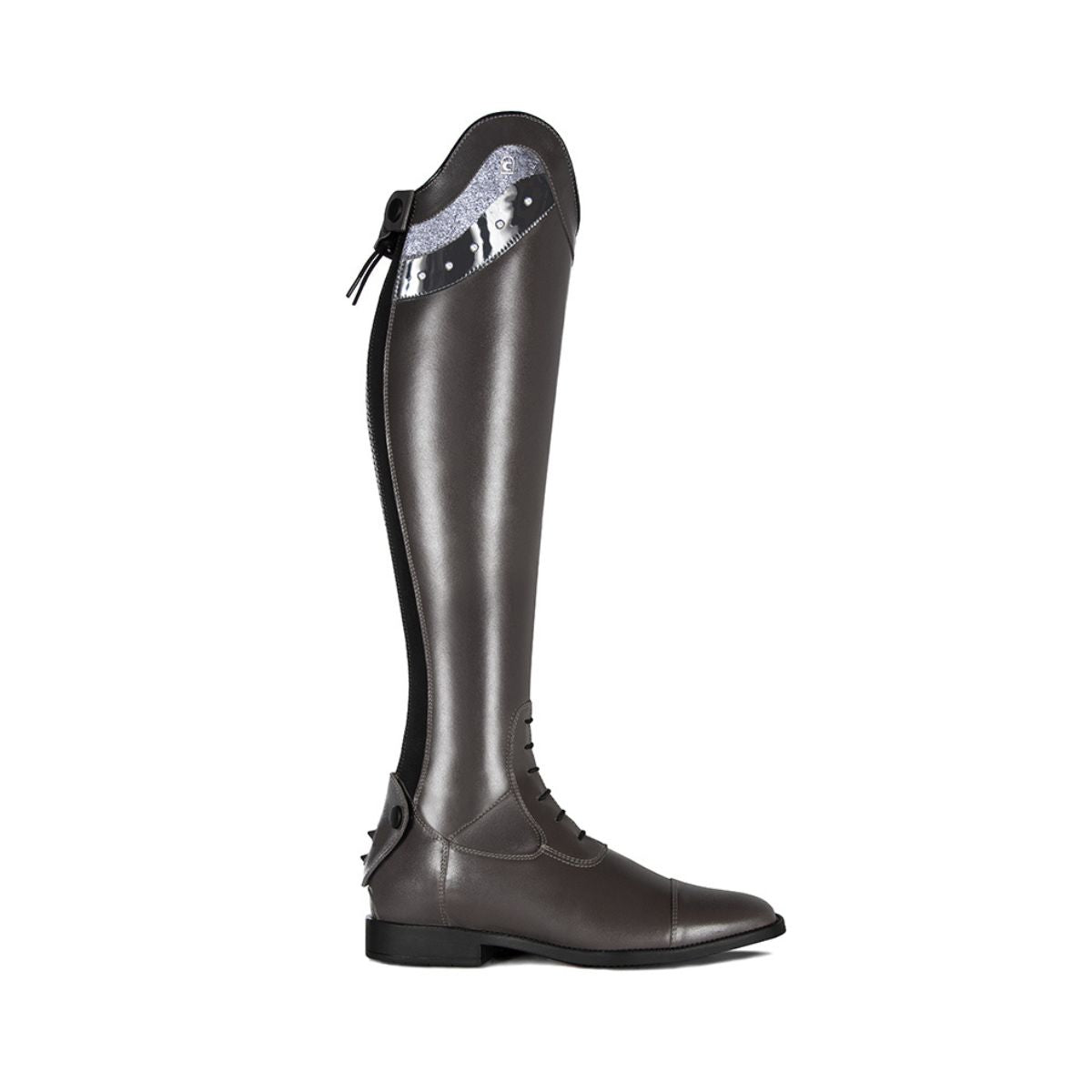 Blød ridestøvle med snører i kalveskind med ekstra slim fit og god elastik langs lynlåsen. Der er griplæder på indersiden mod hesten.