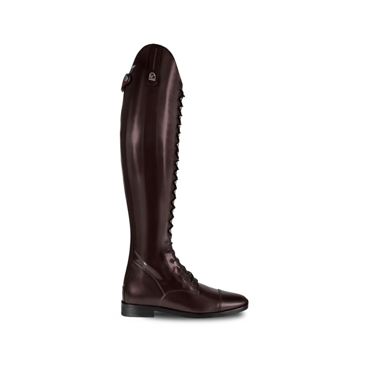 Det er en smart dressurstøvle lavet af fransk kalvelæder med meget høj dressurbue og snører i front. Støvlen har lynlås på bagsiden.