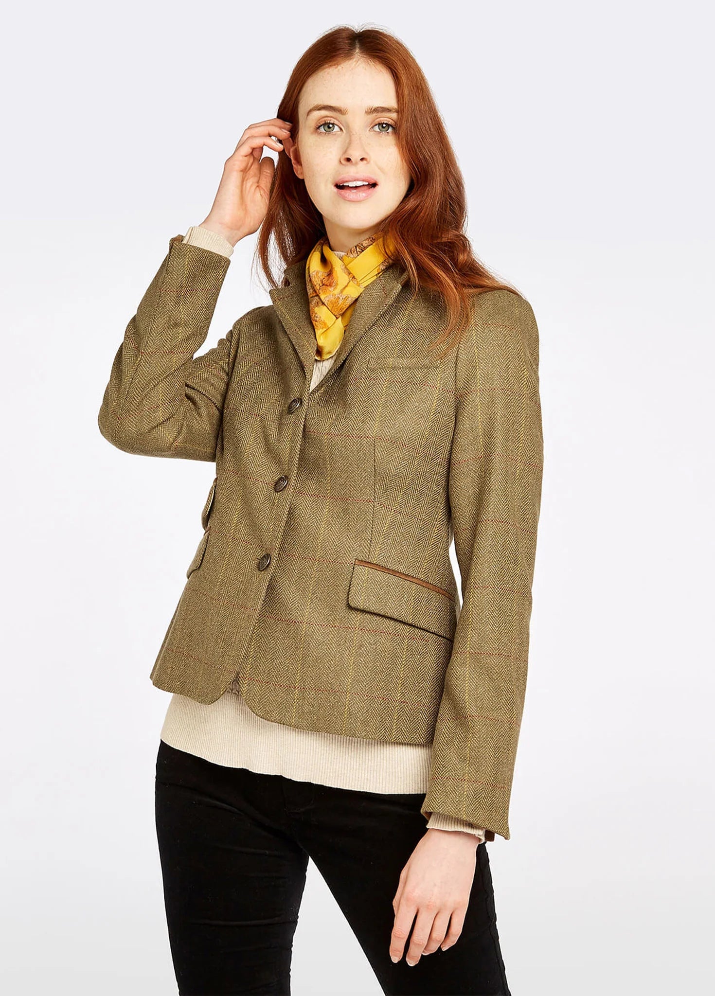 Dubarry Buttercup Tweed Jacket er en elegant og tidløs jakke, der kombinerer klassisk britisk stil med moderne funktionalitet. Denne jakke er fremstillet af luksuriøs uldtweed med en vandafvisende finish, hvilket gør den ideel til både byliv og udendørsaktiviteter.
