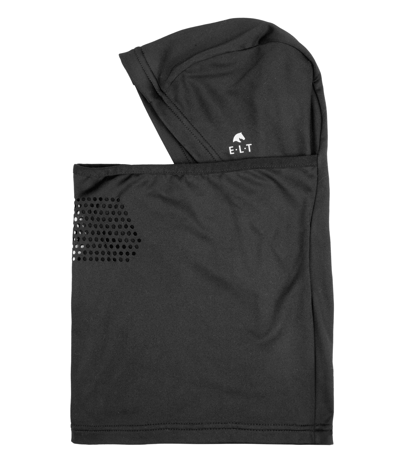 Materialet er både vind- og vandafvisende, og de laserudskårne huller ved mundpartiet gør det nemmere at trække vejret under aktivitet. Et reflekterende ELT-logo på siden giver øget synlighed i mørke.