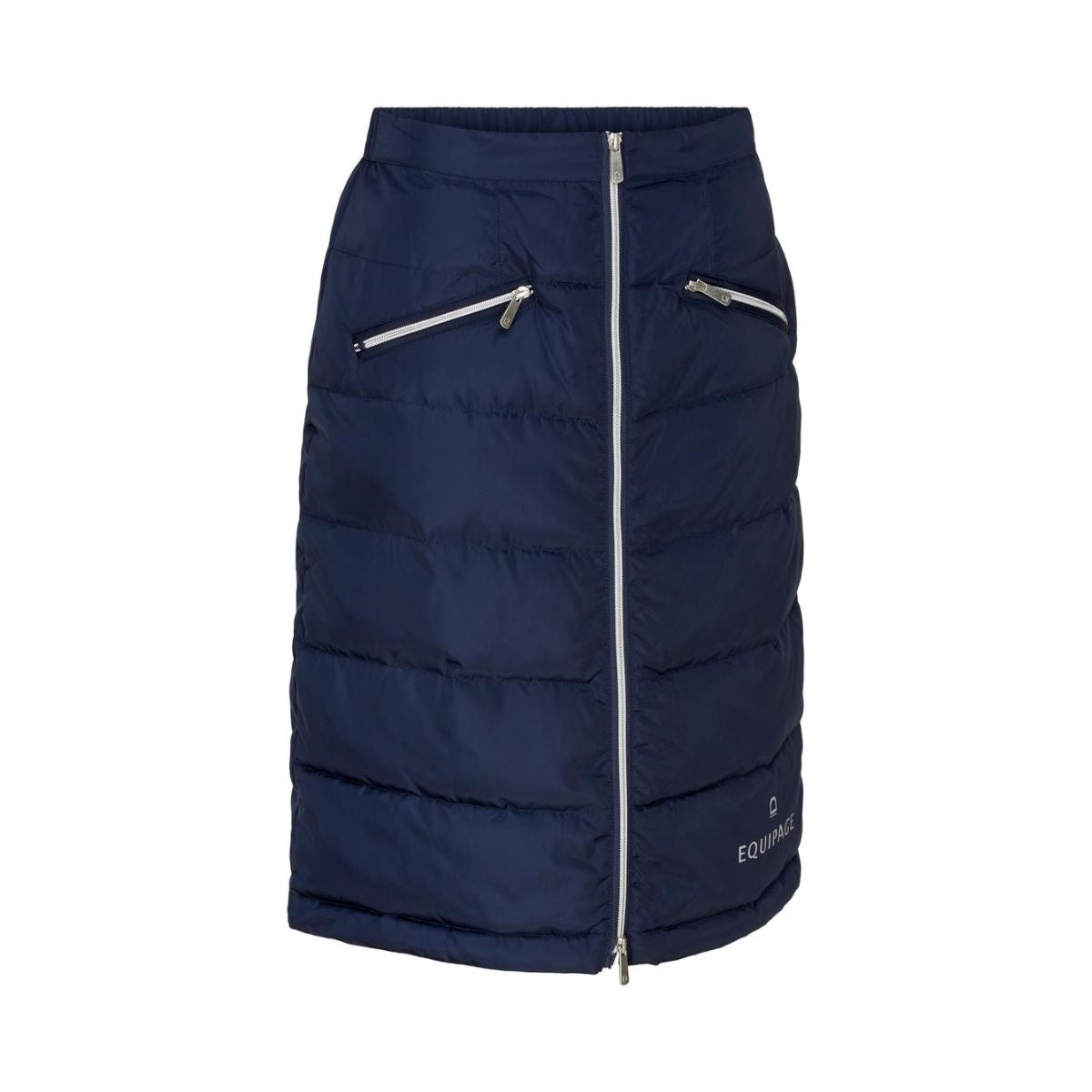 Smart og sporty ride -nederdel fra EquipageNederdelen er designet som en overtræksnederdel - det vil sige den er designet så der er plads til ridebukserne under nederdelen.Den er lækker varm idet den er vatteret med syntetisk dun, og så er den både vandafvisende (5000 mm) og åndbar (3000 mvp) med tapede sømme på udsatte stedet. Det gør den perfekt til mange timer i stalden eller på ridebanen når det er koldt. Det unikke design gør den egnet til at ride i, med lynlås både foran og bagpå, så du har fuld bevægelsesfrihed, men stadig ekstra varme omkring benene. Elastiske benstropper holder nederdelen på plads.Nederdelen har to lynlås lommer foran. Der er elastik i taljen for optimal pasform.Fås i str. XS til XXL samt til piger i str. 140-164 her.