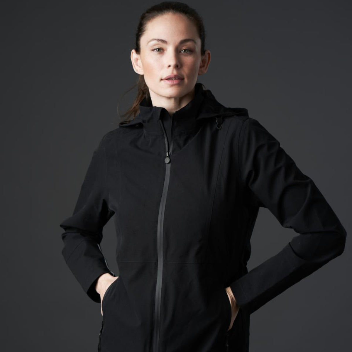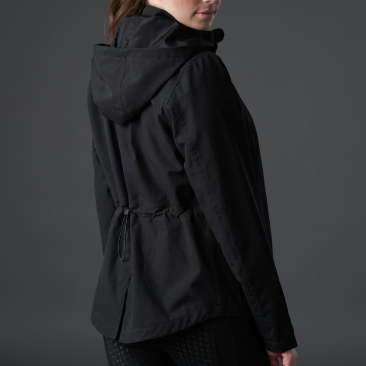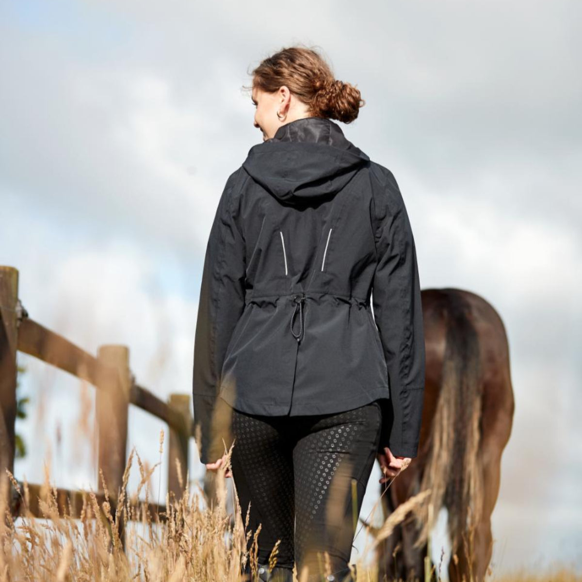 Den perfekte letvægtsjakke, der kombinerer åndbarhed på 2000 MVP med en vandtæthed på 5000 MM og tapede sømme for fuld beskyttelse mod vejret. Den elastiske taljesnøre med en sporty stopper i ryggen sikrer en justerbar pasform, mens den skjulte magnetiske lukning i rideventilen bagpå giver ekstra bevægelsesfrihed under ridning. Hætten er aftagelig med en praktisk coil-lynlås, og jakken har en flatterende længde fra cirka 67 cm i XS til 74 cm i 3XL. Reflekterende piping-detaljer på ryggen og ved ærmekanterne øger synligheden, hvilket gør jakken ideel til både ridning og hverdagsbrug.