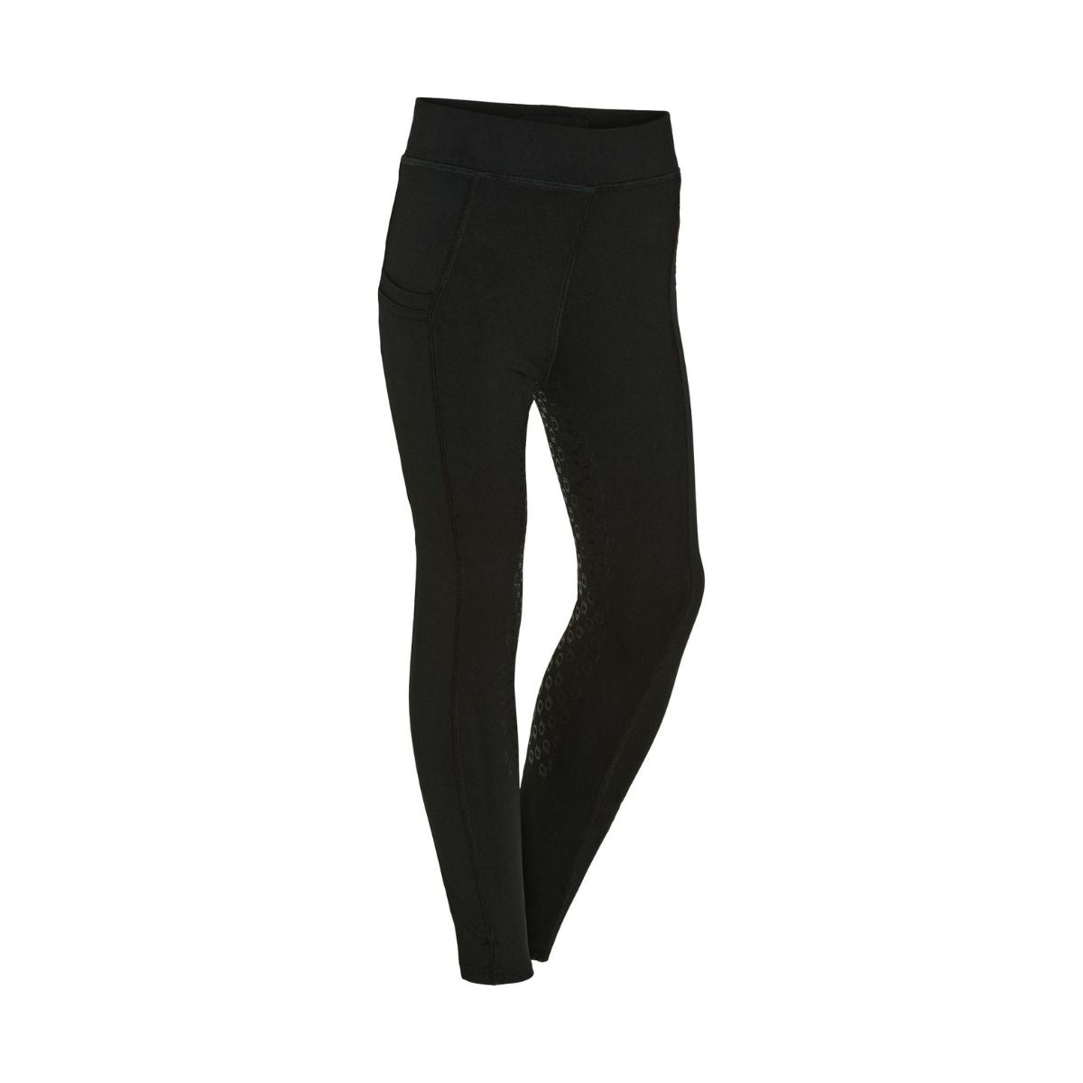 Justerbare ridetights til børn fra Equipage. Ridetights til børn med høj talje og bred elastisk lining der kan justeres indvendigt for optimal pasform. Bukserne har fuld grip i silikone med stigbøjle-logoprint i samme farve som bukserne. Med mobillomme på højre lår. Molly fås også som stævneridetights i hvid, samt i navy med FG i glimmer.
