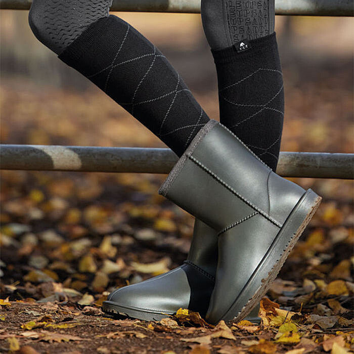 Praktisk bamsestøvle til både børn og voksne. Med den 100% vandtætte ydre, holder den dine fødder tørre under selv de vådeste forhold uden at ligne en gummistøvle. Det varme plysfor indvendigt sørger for at holde dine fødder varme hele dagen. Støvlen er behagelig at have på og den robuste, skridsikre sål sikrer dig et godt fodfæste, både i stalden og i skoven.