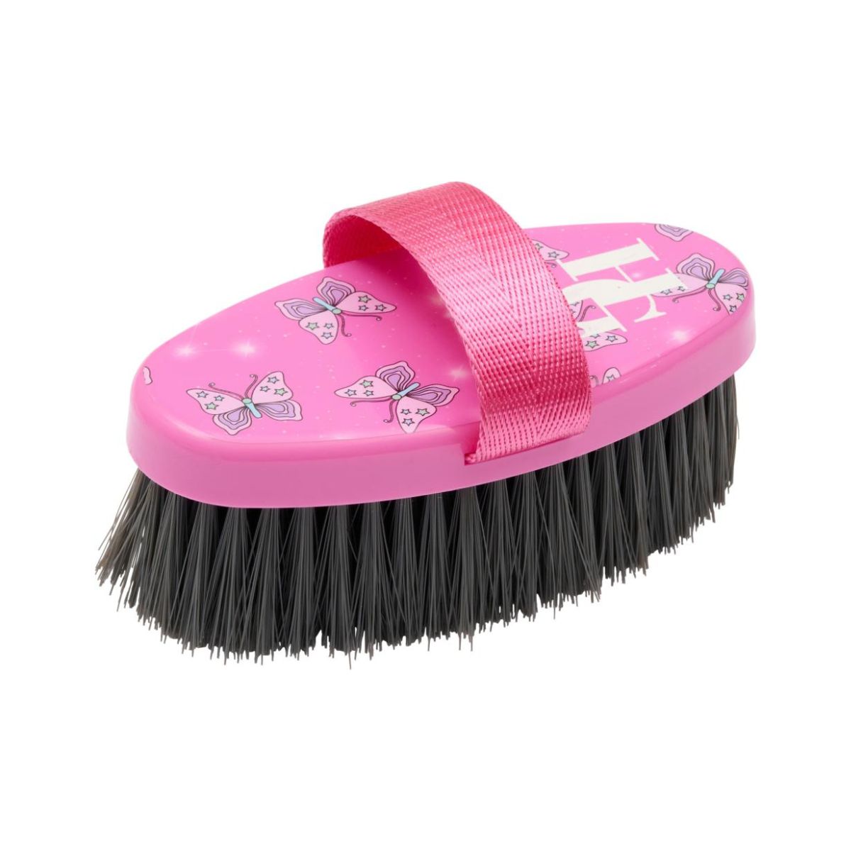 Kropsstrigle med strop. God strigle der kan bruges til både hest og pony. Striglen er en afrundet strigle med strop, som gør den let at holde fast i hånden. Børsten er blød og kan bruges overalt på hesten. En sød og god strigle der bør findes i enhver strigletaske. Kan fås i farven lyserød og lyseblå. Der findes flere matchende børster.