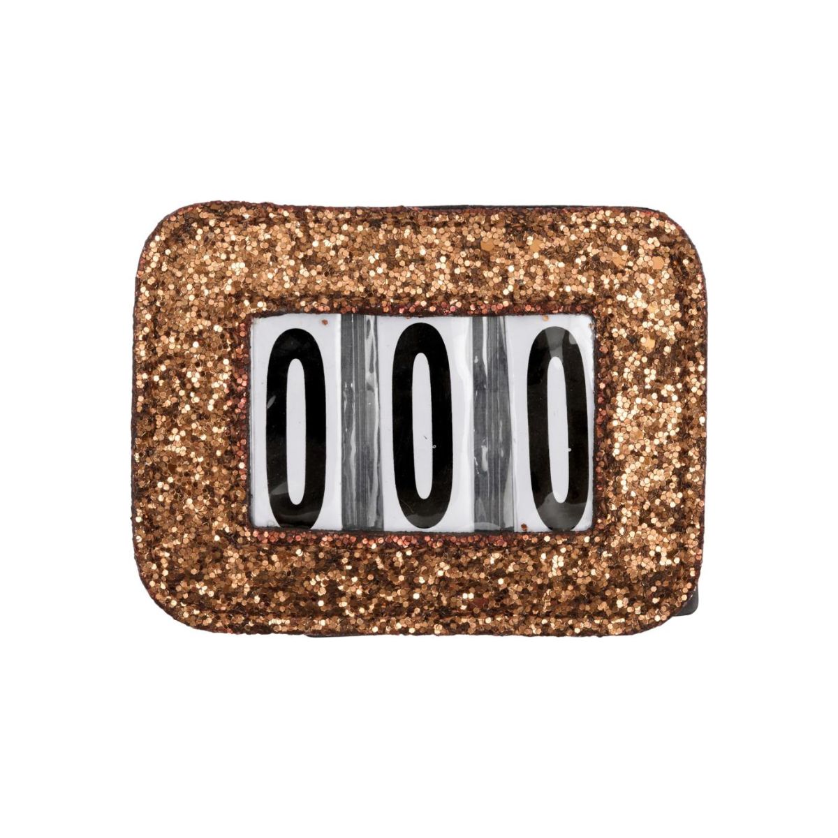 Stævnenummer med glimmer, der giver et elegant og stilfuldt look til stævner. Tallene er placeret i gennemsigtige plastlommer, hvilket gør dem nemme at udskifte efter behov. Designet sikrer en praktisk og sikker fastgørelse med både rem og nål på bagsiden, så nummeret sidder stabilt under hele konkurrencen. Ideelt til ryttere, der ønsker en funktionel og dekorativ løsning til stævnebrug.