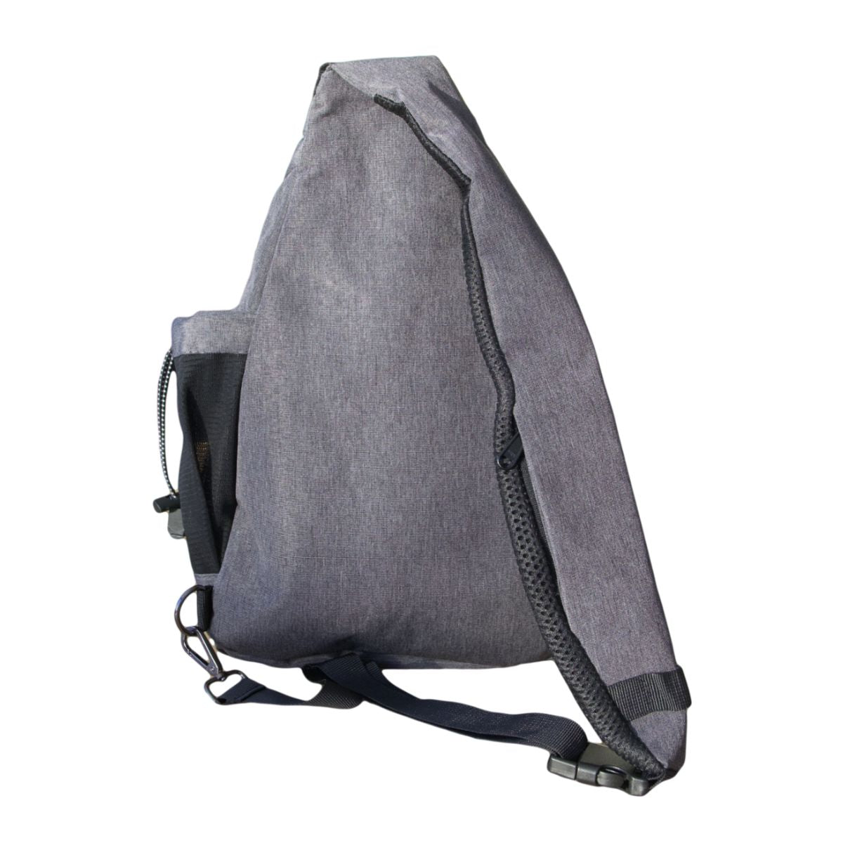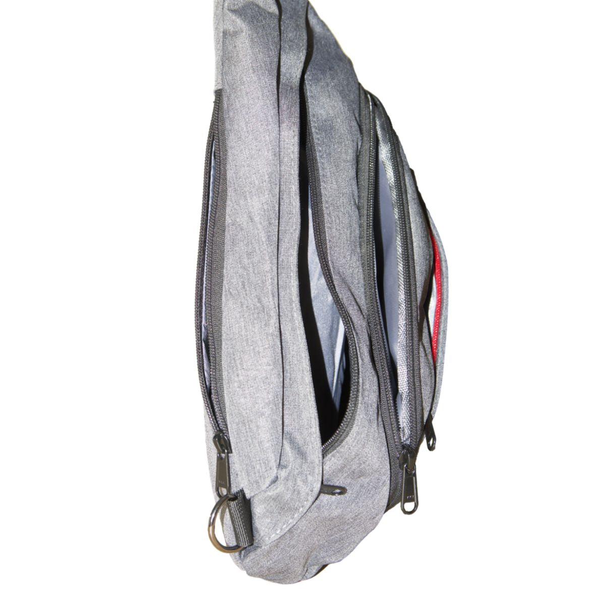 1 stort rum med lynlås og inddelinger, samt 3 lynlåslommer. Desuden en lille nøglelomme på skulderstrop og drikkedunkholder.