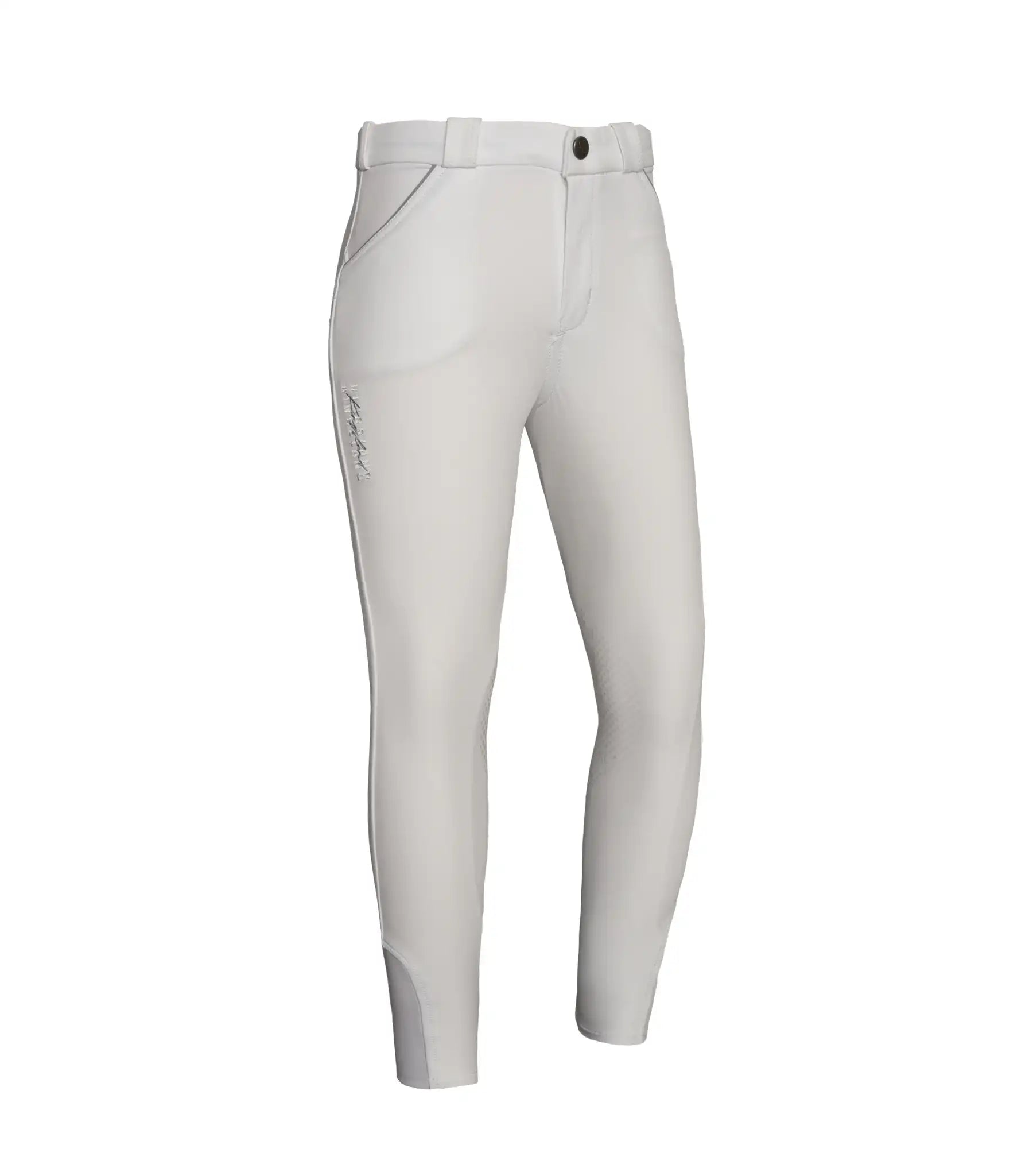 Kenton ridebukserne er hvide med diskrete lysegrå detaljer. De har to skrå forlommer samt to baglommer.