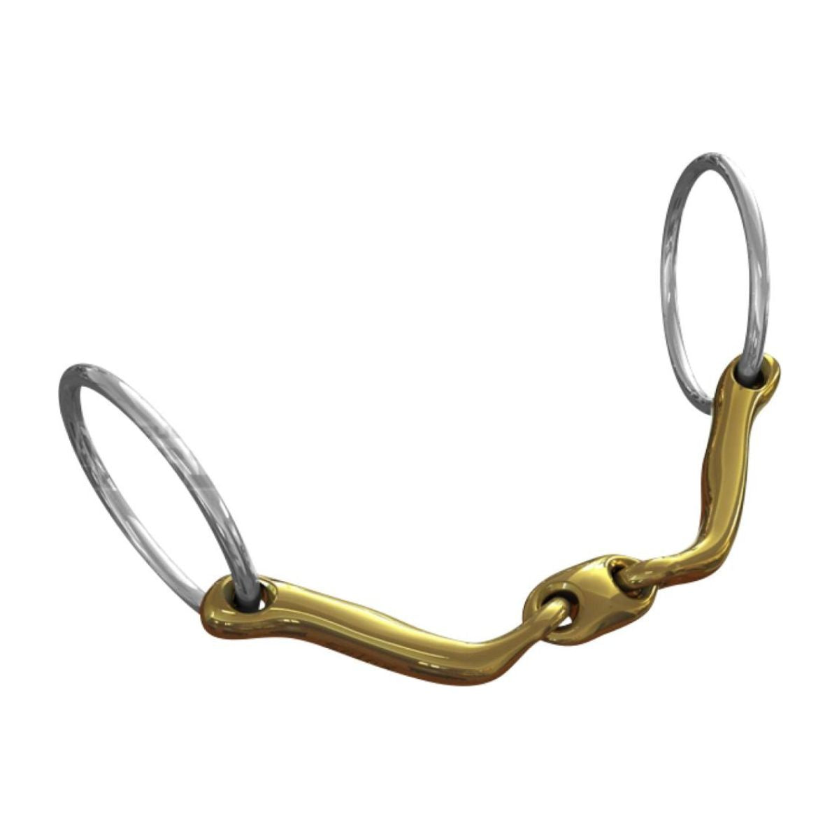 Det tydeliggør og understreger i høj grad signalerne gennem tøjlen. Ved at fremme selvbæring og gennemslagskraft kan der udvikles en ægte form og frihed gennem skuldrene. Verbindend har konsekvent hjulpet med at eliminere tungeundvigelser og opmuntrer hesten til at blødgøre og slappe af gennem kæben. Det snedigt buede mundstykke kan desuden fremme udviklingen af bøjen til lateralt arbejde og mindre cirkler. Dette dressur-legale snaffle er ikke strengt, så hvis du er en fornøjelsesrytter og blot ønsker at løfte forbenet, er dette bid et logisk valg.