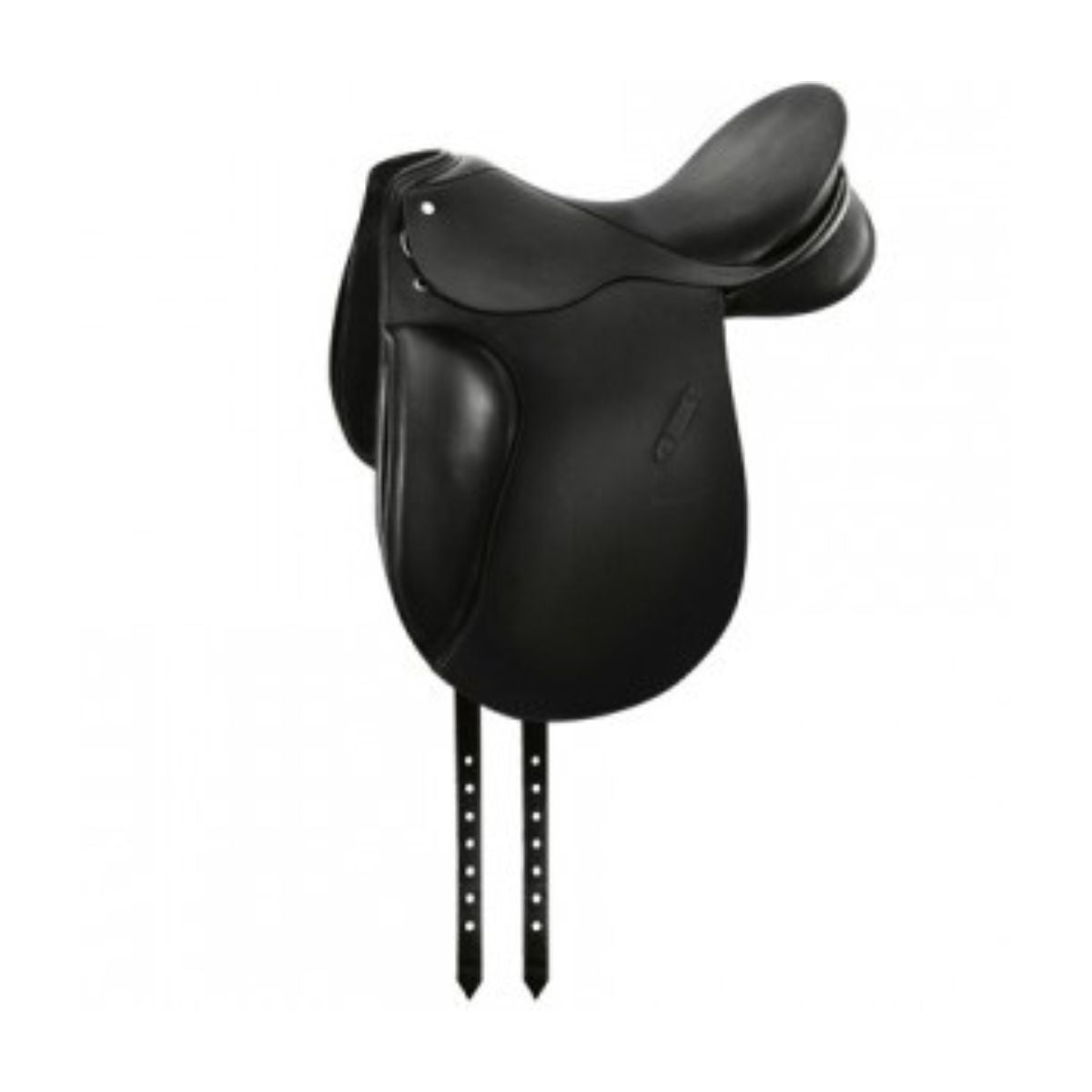 FleksibelPS bom, lavet af lamineret træ og læder. Meget hestevenlig sadel med bredtkammer og store brede sadelpuder. Stor faconformet sadelklap giver en stor knæstøtte,der hjælper rytteren til at placere schenklen korrekt.