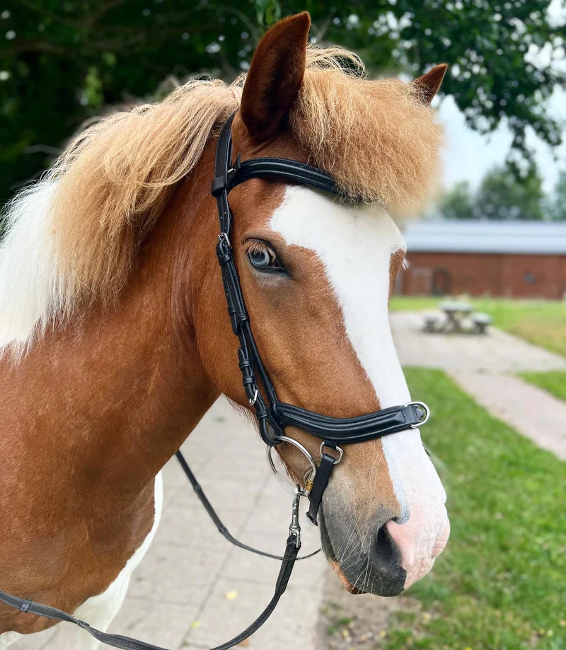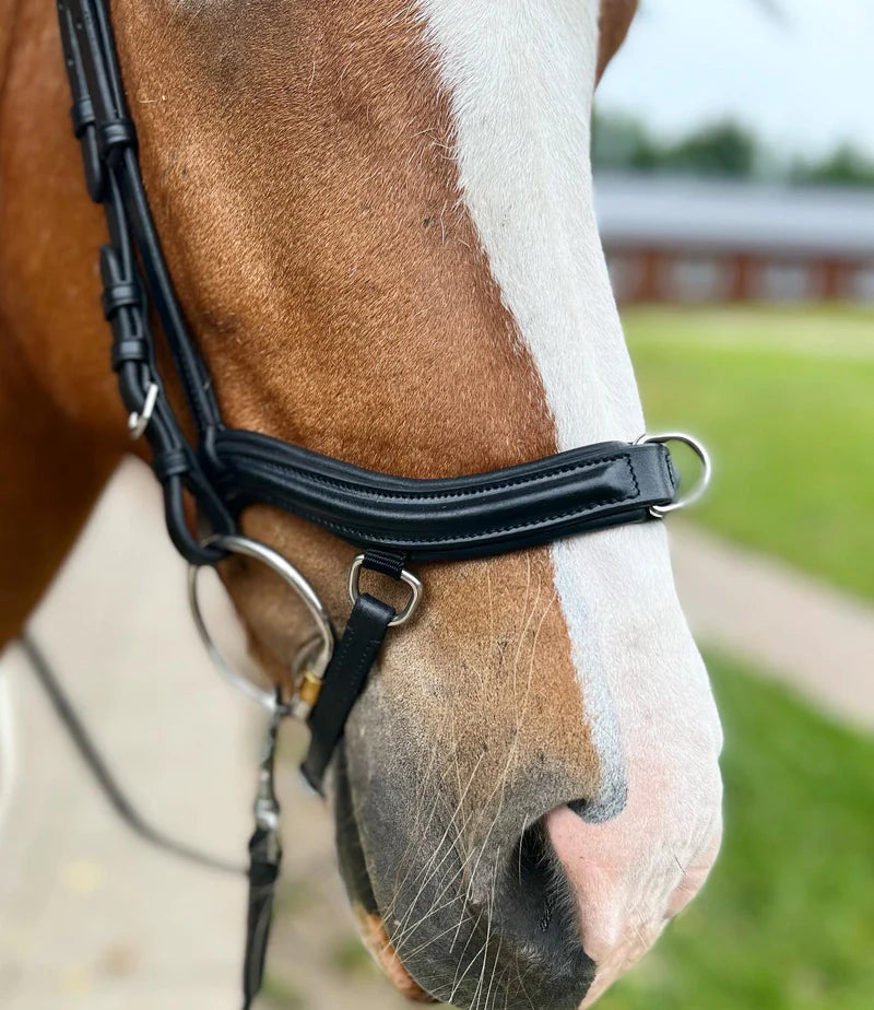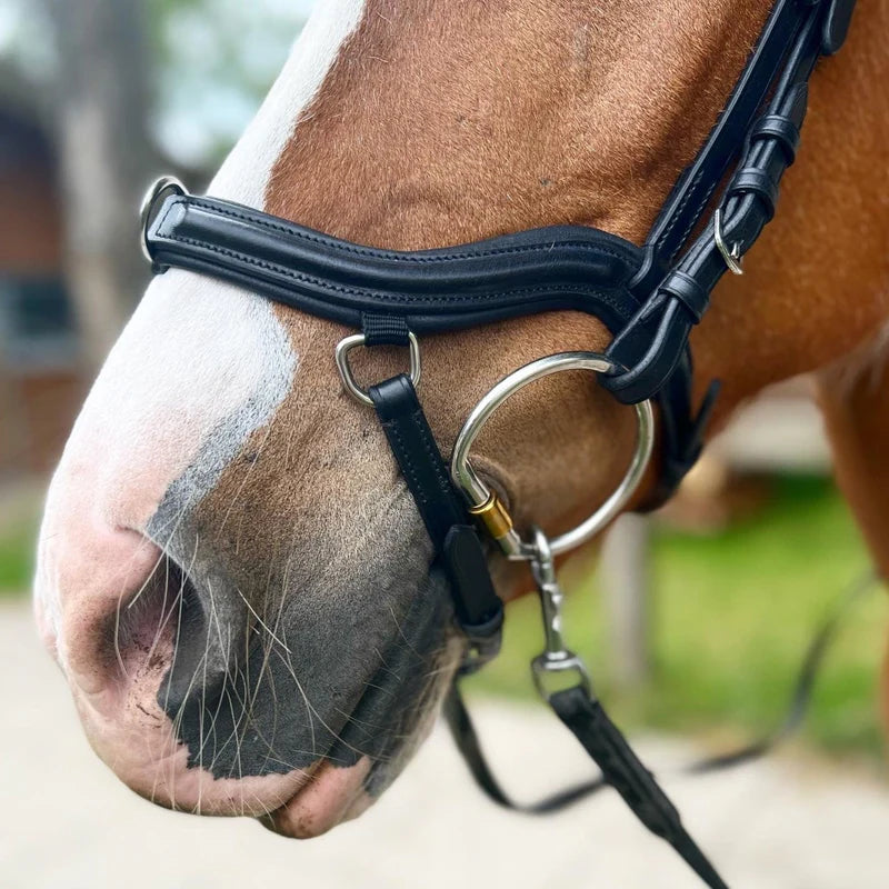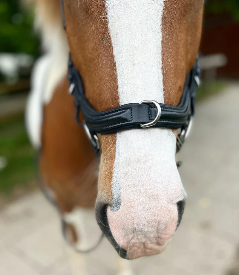 Man kan også fæstne tøjlen i de små ringe ved næsebåndet, feks til tilridning. Næsebåndet er anatomisk udformet.