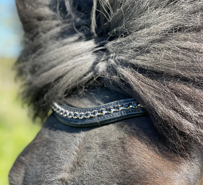 Pandebånd fra PH deluxe med sorte sten. Passer til alle nakkeremme fra PH deluxe serien, samt alm. smalle nakkeremme. Se matchede næseremme fra samme serie.
