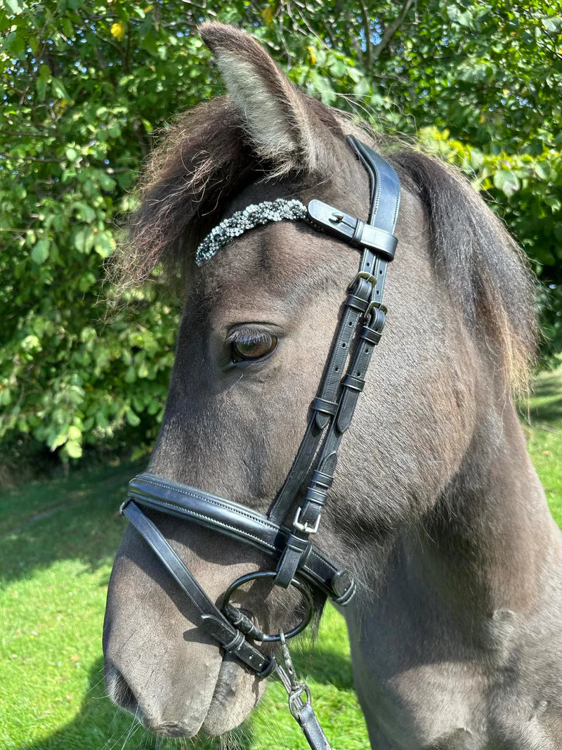 Flot flettet pandebånd med diamanter med skiftevis sorte/grå/hvide sten fra PH deluxe serien. Passer til alle PH deluxe nakkeremme.