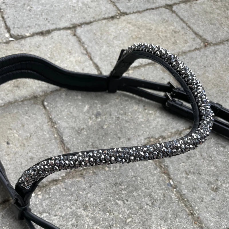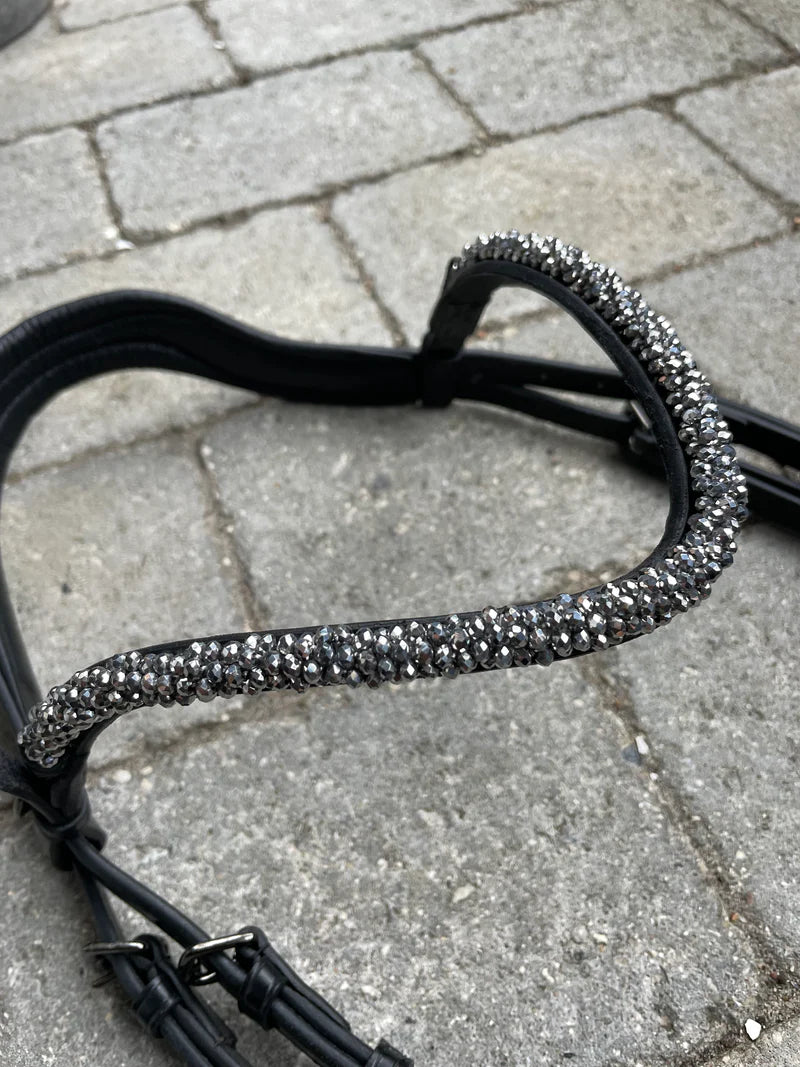 Flot pandebånd fra PH med swung. Pandebåndet består af en masse små perler, der er syet sammen, på en roterende måde, hvilket giver et meget flot glimtende look. Passer alle trenser i PH serien.