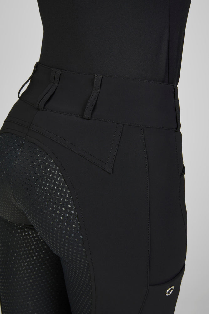 Pikeur Candela ridebukser med fuld grip. En lækker ridebuks fra Pikeur med fuldgrip og høj talje. En model der sidder rigtig godt på de fleste og er en af de mest populære ridebuksmodeller på markedet. New Candela er en forbedring af den traditionelle Candela hvor stoffet føles blødere og mere lækkert - og så er der kommet mobillomme på låret. Bukserne har en bred lining med tre knapper i livet og to skrå lommer. Silikone grip i høj kvalitet sikrer et rigtig godt greb i sadlen og god kontakt til hesten.