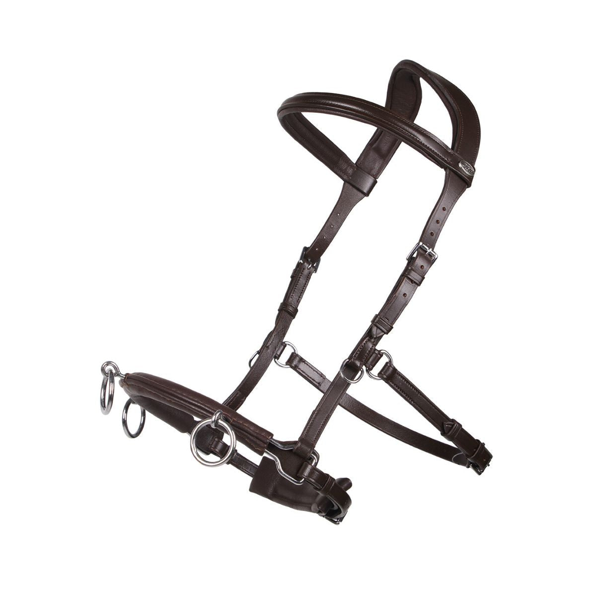 Multifunktionel læder kapsun fra QHP. Kapsun i læder i anatomisk design. Kapsunen er designet så den også kan bruges som trense ved hjælp af de aftagelig bid clips. Derved kan den bruges med eller uden bid. Der er 3 d-ringe på næsebåndet som kan bruges til longering. Anatomisk design der forhindrer unødigt pres på hesten hoved. Fås i pony, cob og full i brun og sort (dec 2021).