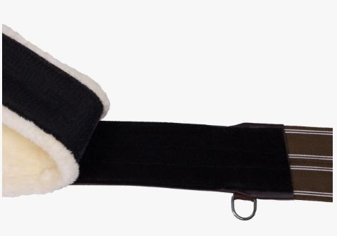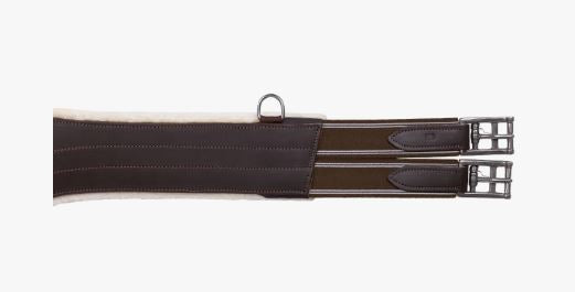 Anatomisk formet gjord med knopbeskytter lavet af okselæder med blødt imiteret pelsfor på indersiden for ekstra komfort. Foret kan tages af og vaskes for sig - så rengøring af gjord er let. Gjorden har en karabinhage til fastgørelse af træningshjælpemiddel. Dekoreret med brune syninger for et elegant look.