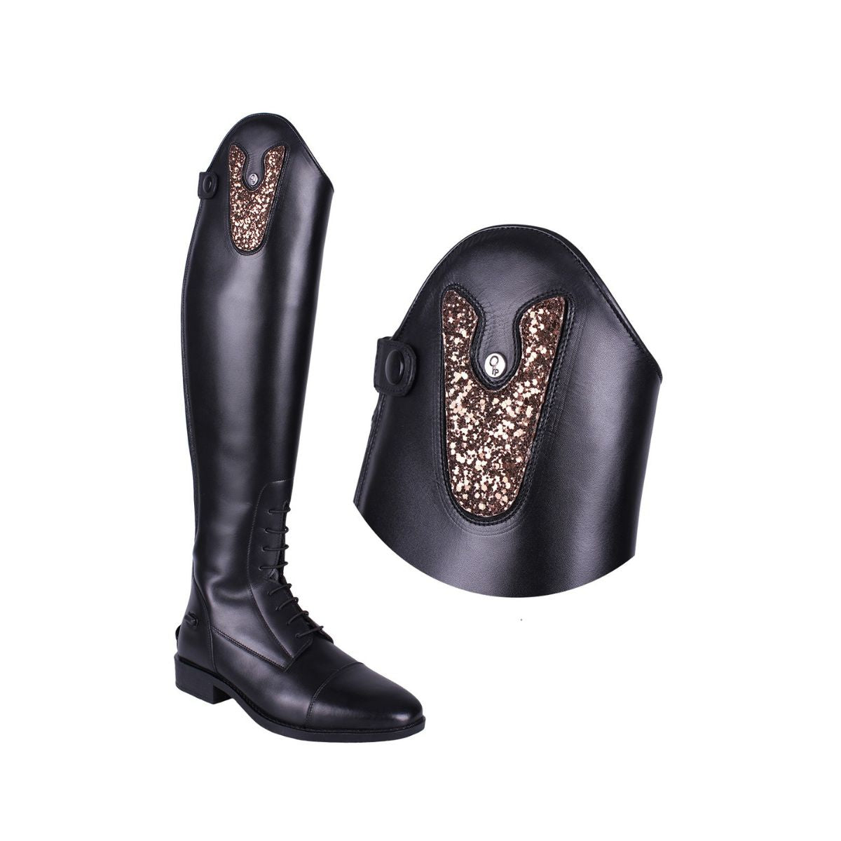 Pift dine QHP Sasha ridestøvler op med en ny top Støvletop til Sasha ridestøvler der er designet til at du kan skifte look alt efter humør eller anledning. Støvletoppen sættes nemt på med velcro.