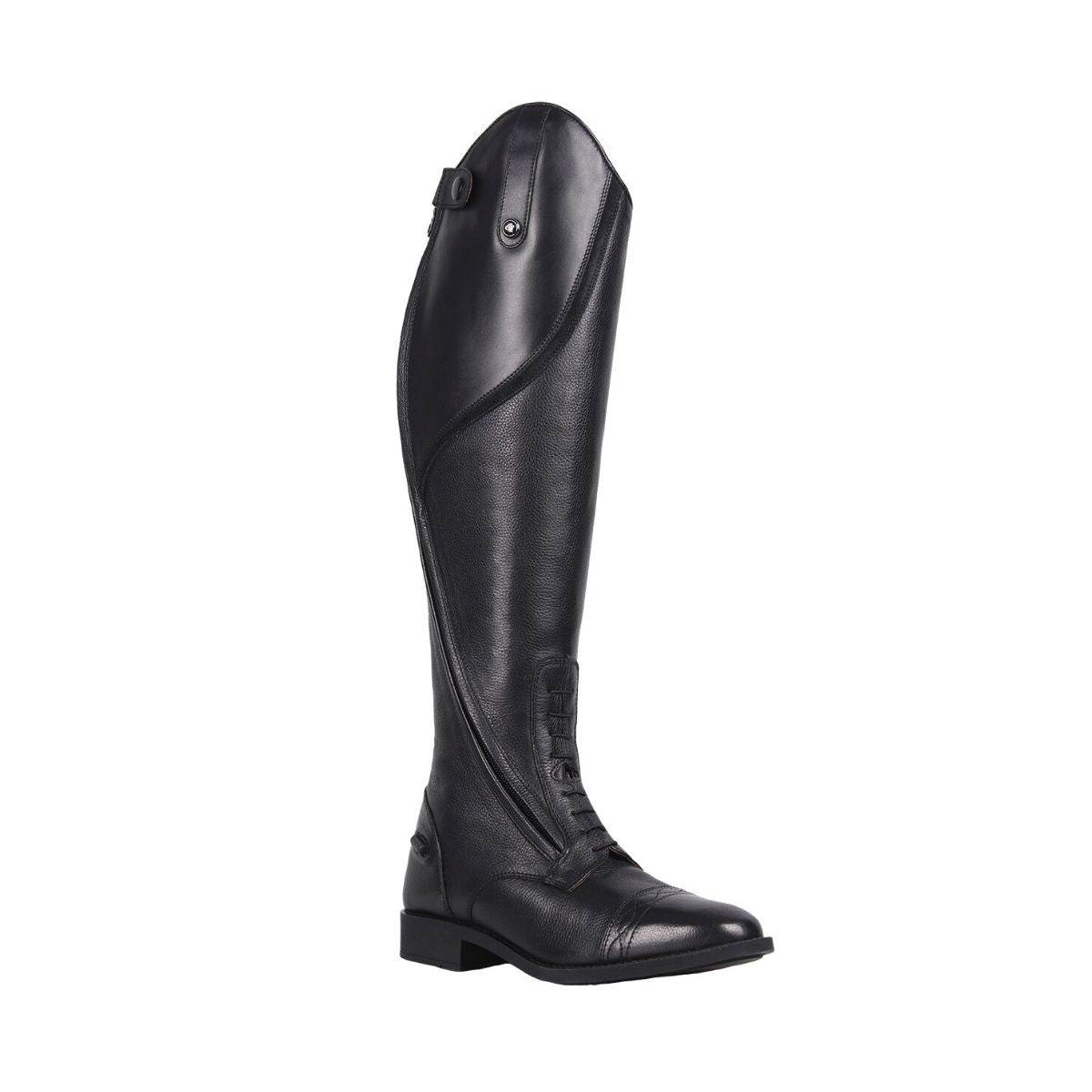 Tamar ridestøvle fra QHP med skrå lynlås for optimal komfortElegant ridestøvle i fleksibelt læder af høj kvalitet. De buede linjer giver et flot look.Lynlåsens let buede placering giver ekstra komfort og holdbarhed. Det fleksible læder, de elastiske snørrer og elastik indsatserne bag på støvlen gør støvlen behagelig at have på. Støvlen findes også med et smallere skaft. Se målskemaet. Fås i str. 36-42 i sort og brun.