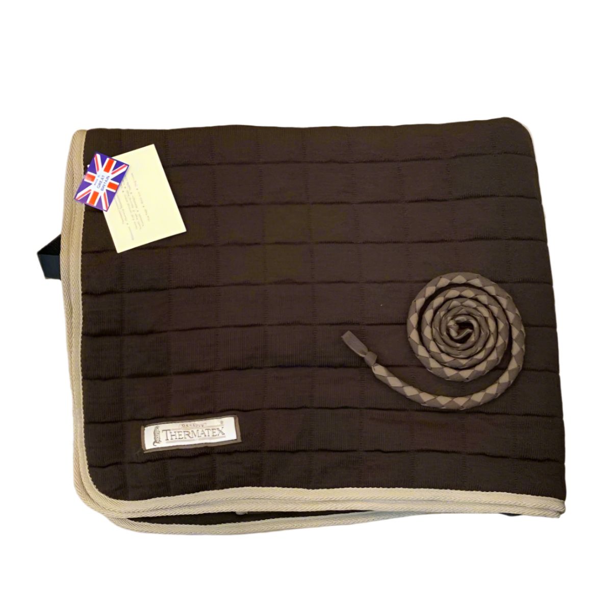 Dækkenet fastgøres let til gjordstropper eller stigeremme og giver maksimal bevægelsesfrihed for både hest og rytter. Der medfølger en flettet snor til montering under halen.